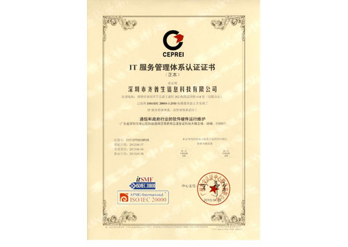 • IT服務(wù)管理體系認(rèn)證證書