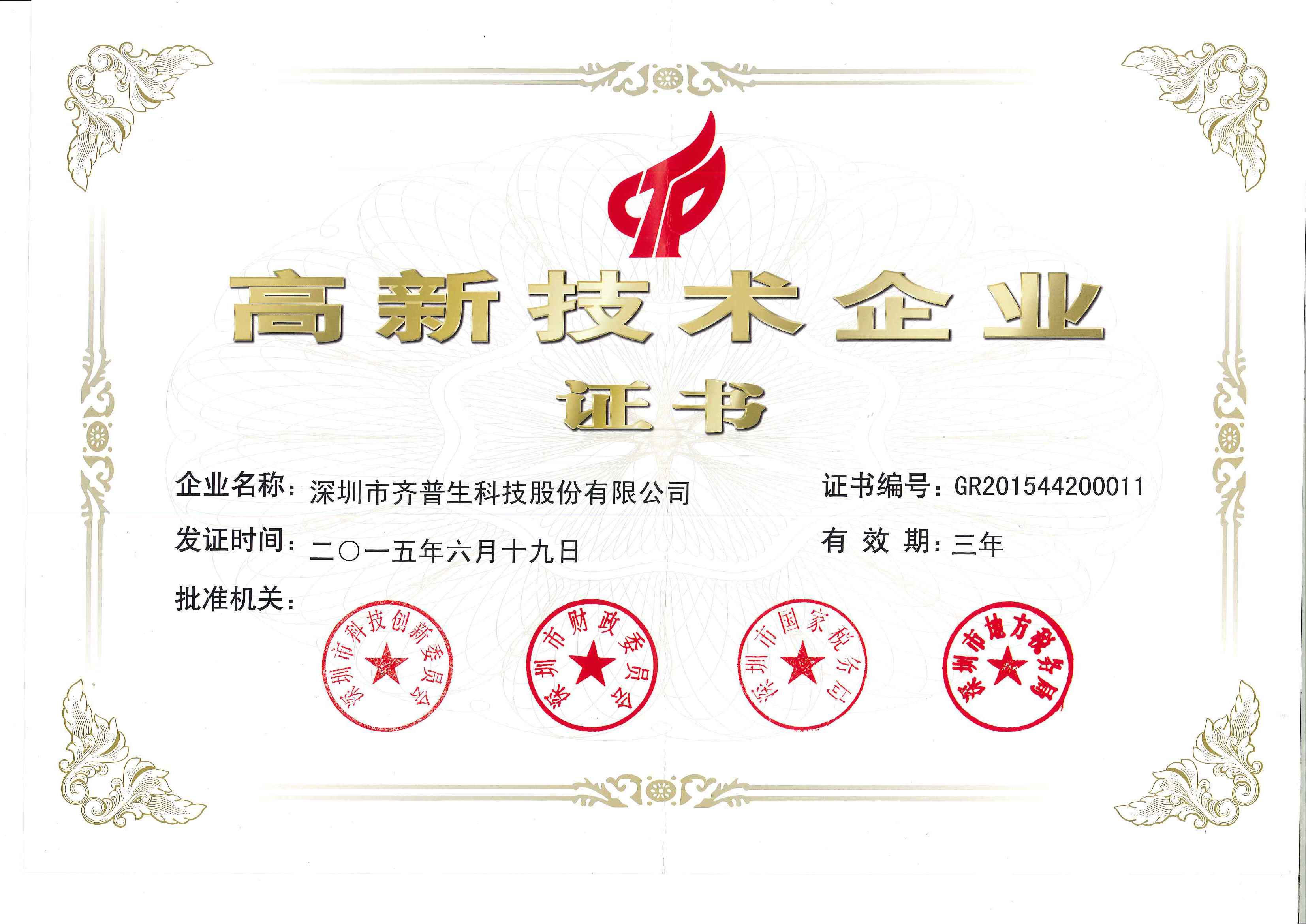 • 國家級高新技術(shù)企業(yè)證書